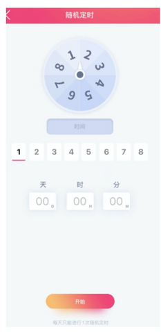 In the random timer page, select numbers. Fill in the numbers for each time area of the wheel. After entering the 8 time areas, click the start button, and the wheel starts to rotate. After the rotation stops, the pointer points to the number represented by the locking time, the timer coupons obtained at the current random timing. If immediate effect is selected, it will be started automatically after the rotation stop.