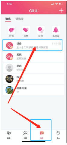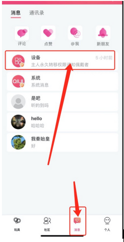 The invited friend will view the invitation record in the device message bar in the app message page. After agreeing, he/she will become the Keymaster of the device.