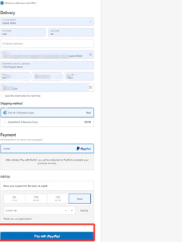Step 1: On the checkout page, select PayPal as your payment method, even if you don't have a PayPal account. Then you will be redirected to a page where you can pay with a PayPal credit/debit card. Don't worry, you don't need to register for PayPal. Just click button of "Pay with Paypal" as the image below.